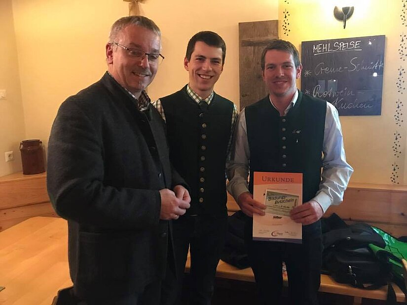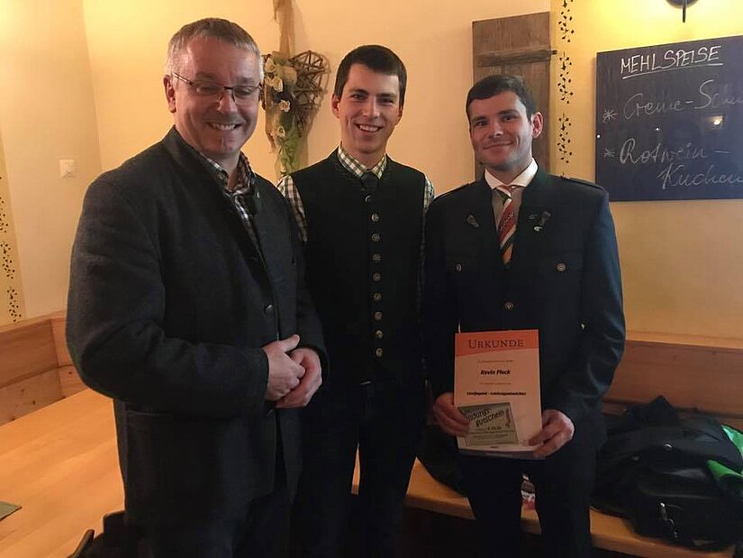 Zum Abschluss überreichten unser Landesobmann Stv. Martin Klug mit unserem Kammersekretär Ing. Johann Kaufmann, Matthias Liebmann und Kevin Fleck die silberne n Leistungsabzeichen.
